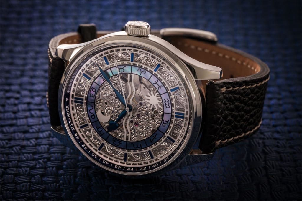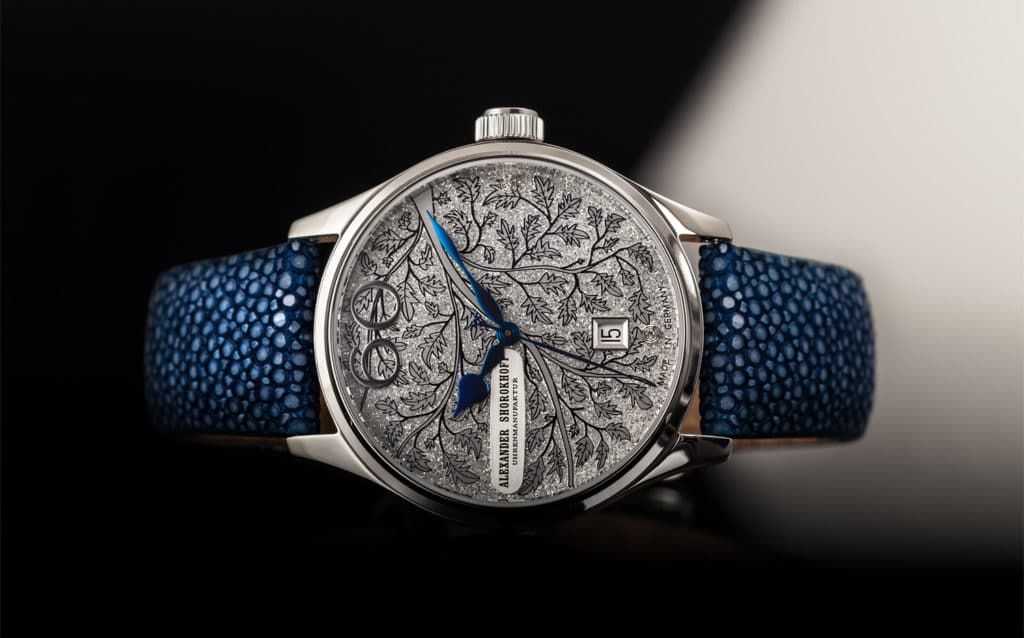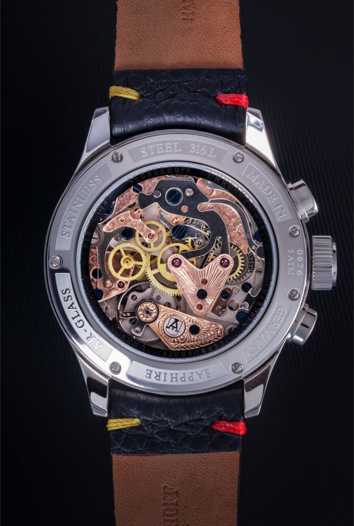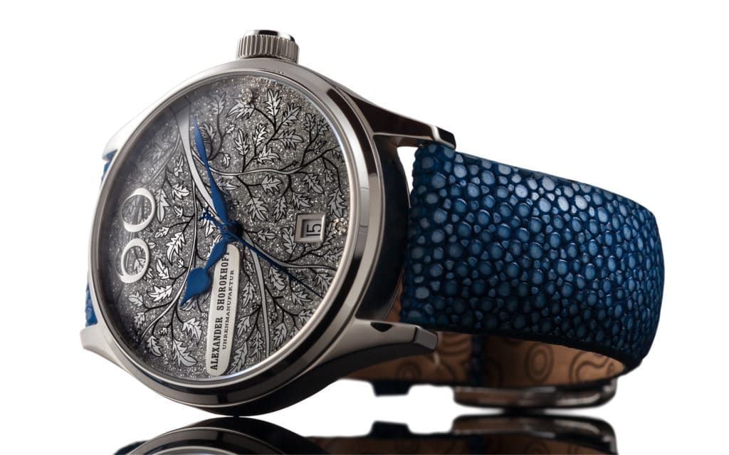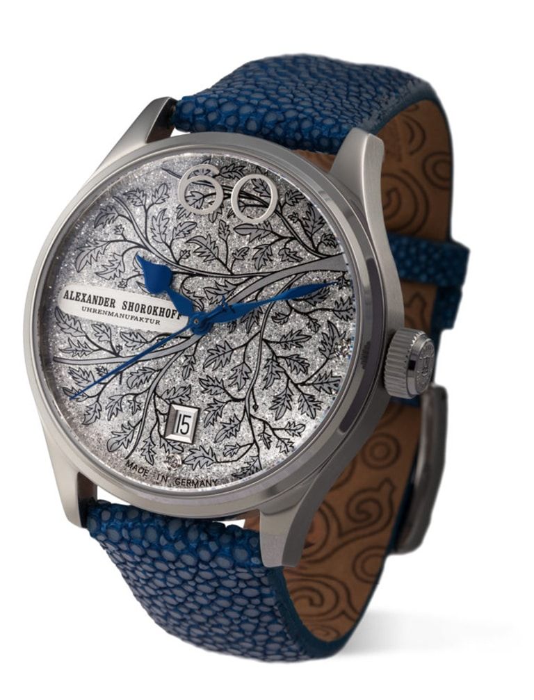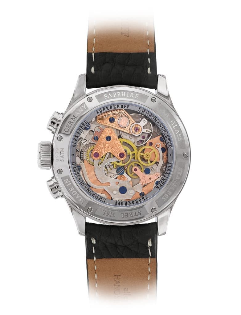 Im Inneren der Uhr tickt das Schweizer Uhrwerk ETA.2671 mit automatischem Aufzug. Der Rotor des Werks wurde, wie bei Alexander Shorokhoff üblich, handgraviert. Limitiert auf nur 30 Stück weltweit.